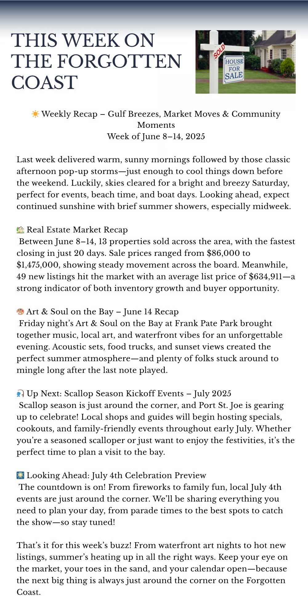 Weekly Recap - Gulf Breezes, Market Moves & Community Moments Week of June 8-14, 2025