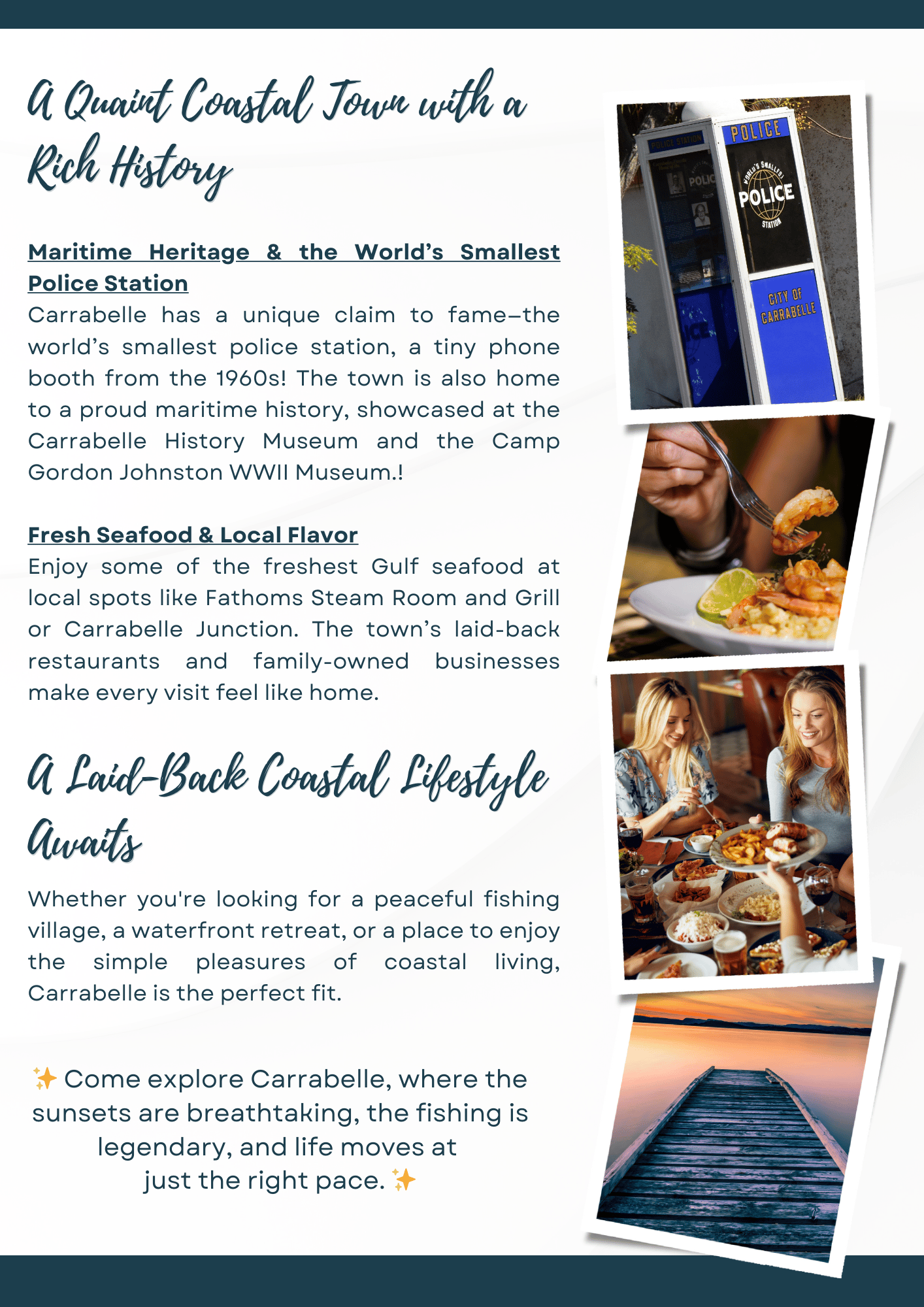 There's plenty to do around Carrabelle, including shopping, dining, nightlife, parks, and more. Data provided by Walk Score and Yelp.